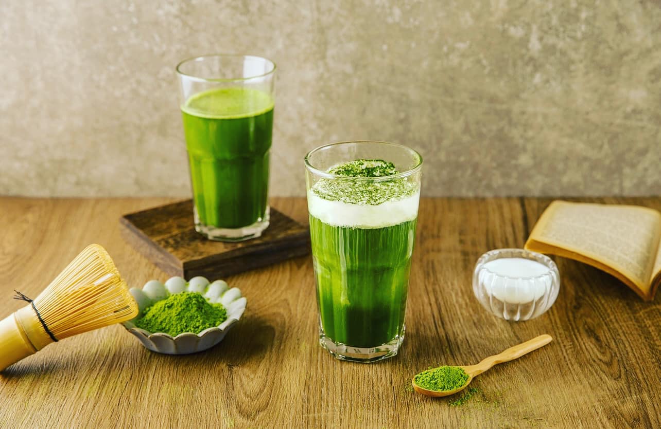 菜單飲品提供玄米茶、培茶、抹茶,培茶與抹茶都可以另外選擇拿鐵,
