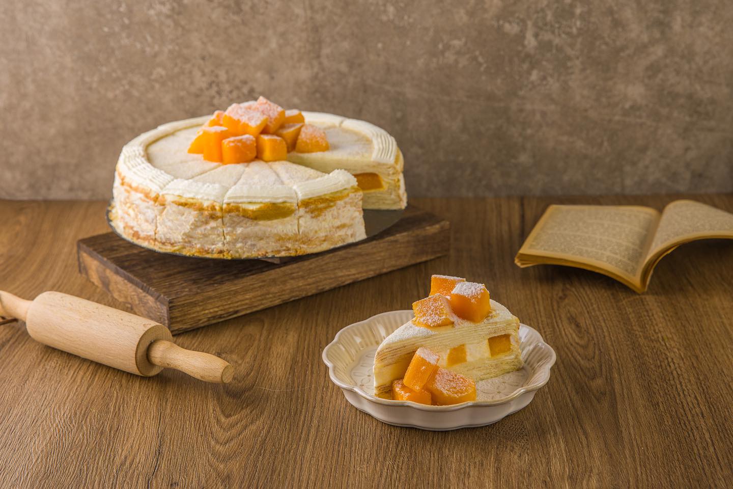 千層蛋糕可以另外向店家訂購整膜蛋糕,也會依照季節推出當季的限定口味甜點喔!