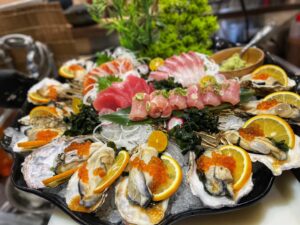 餐點提供:生魚片丼飯、定食、握壽司、古早味台式料理、精緻日本料理、餐後享用手作甜點蛋糕等。