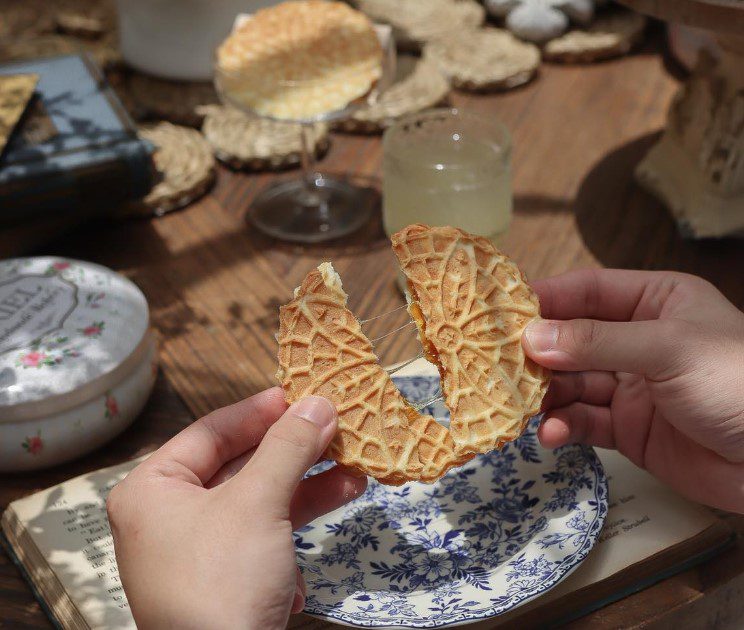 隱身在巷弄的蕾絲餅專賣,是由老宅重新改建多了種復古風的氛圍,由一位熱愛甜點的主廚所創立,所使用的材料都會是最頂級的法國麵粉及法國,愛莉兒甜點坊每天現場都會現烤蕾絲餅,很多人都是為了這奶香迷人酥脆的蕾絲餅而來,手工蕾絲餅是採用店家獨家訂製的圓式歐洲風情鐵盒盛裝共5種花色,每塊手工蕾絲餅都是採獨立包裝很貼心,美味的手工蕾絲餅香甜不膩,多種口味可選擇而且內餡還會牽絲,包裝精美也可以當伴手禮喔。