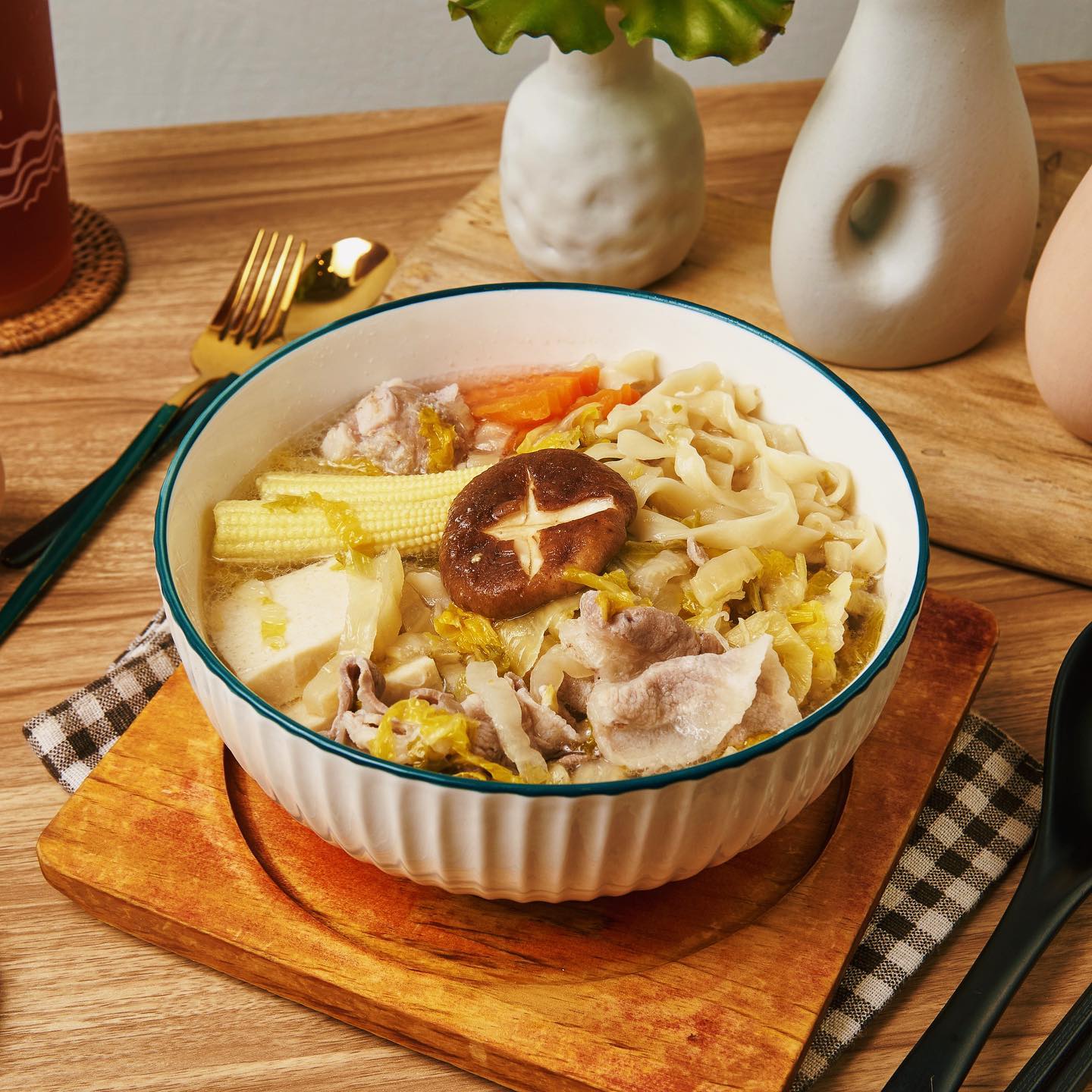 店內餐具跟調味料等都為自助式,有提供置物籃可以自由使用,