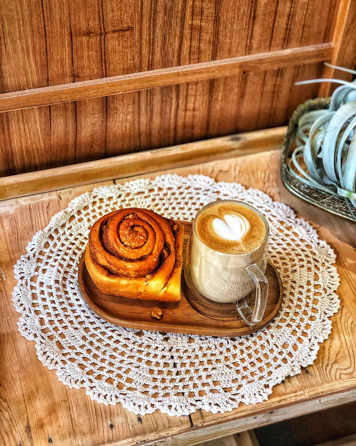 店面整體為紅磚外觀搭配沉靜綠內裝,搭配大量木質擺設讓空間充滿溫馨感,
