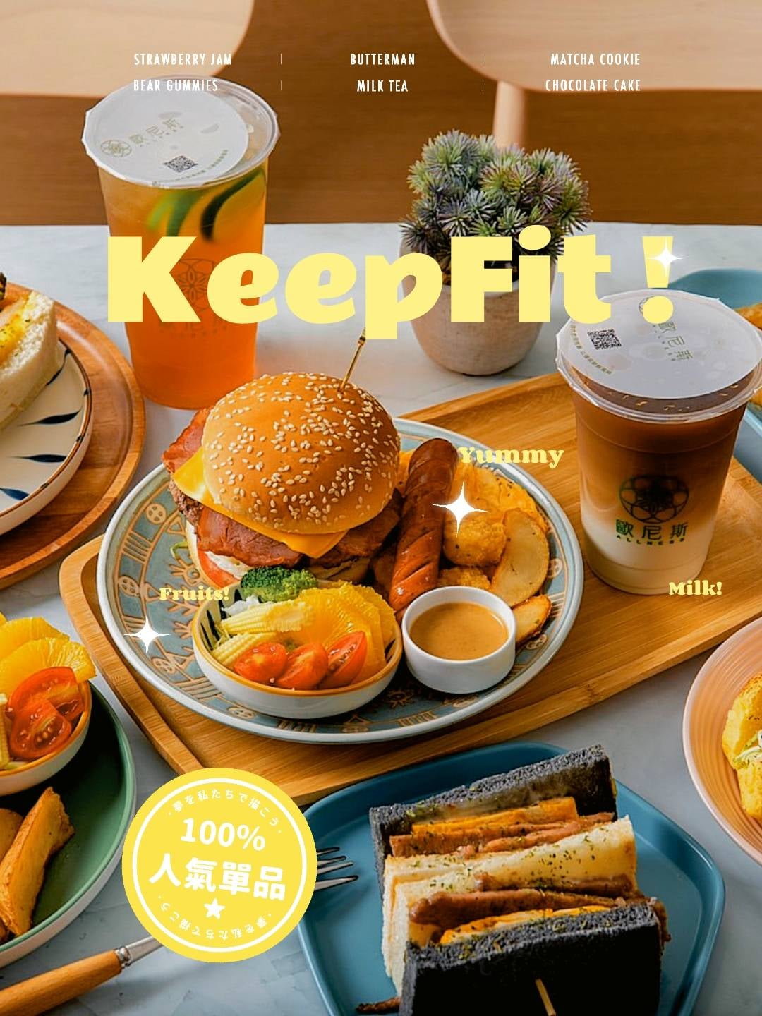 每一份早午餐都有含季節水果、配餐,以及一杯35元飲品,