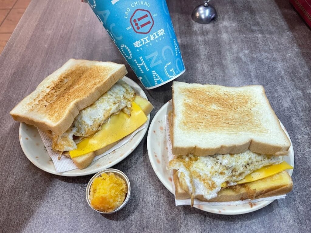 交通:搭乘高雄捷運橘線或紅線至「美麗島」站1號出口,再步行約2分鐘 習傳約70年的老江紅茶牛奶茶味醇厚,帶點炭燒的味道,也有人說是帶著一點咖啡味,有別於一般所認知的紅茶牛奶。半熟蛋的火腿蛋土司,咬下去酥脆又不會過乾,再配上流出來的半熟蛋,是最佳的黃金搭檔!