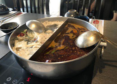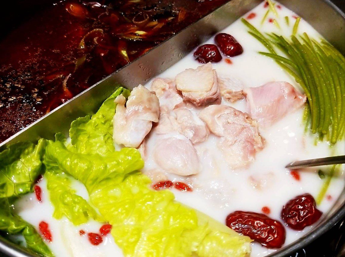鍋內有兩種湯底,分別是麻辣火鍋、白玉養生鍋,店內麻辣湯底濃郁又鮮豔,吃了之後一個舒服好吃感的麻辣鍋,口味比較沒那麼辣跟那麼鹹也不會很口乾,果然是標榜無味精有關係,而鴨血跟豆腐都有中上以上的水準,而霜降牛的油花分布相當漂亮,當然口感就是軟嫩又多汁,吃一餐下來覺得很值得,每樣料都很用心無味精無牛油,安心享受無負擔。