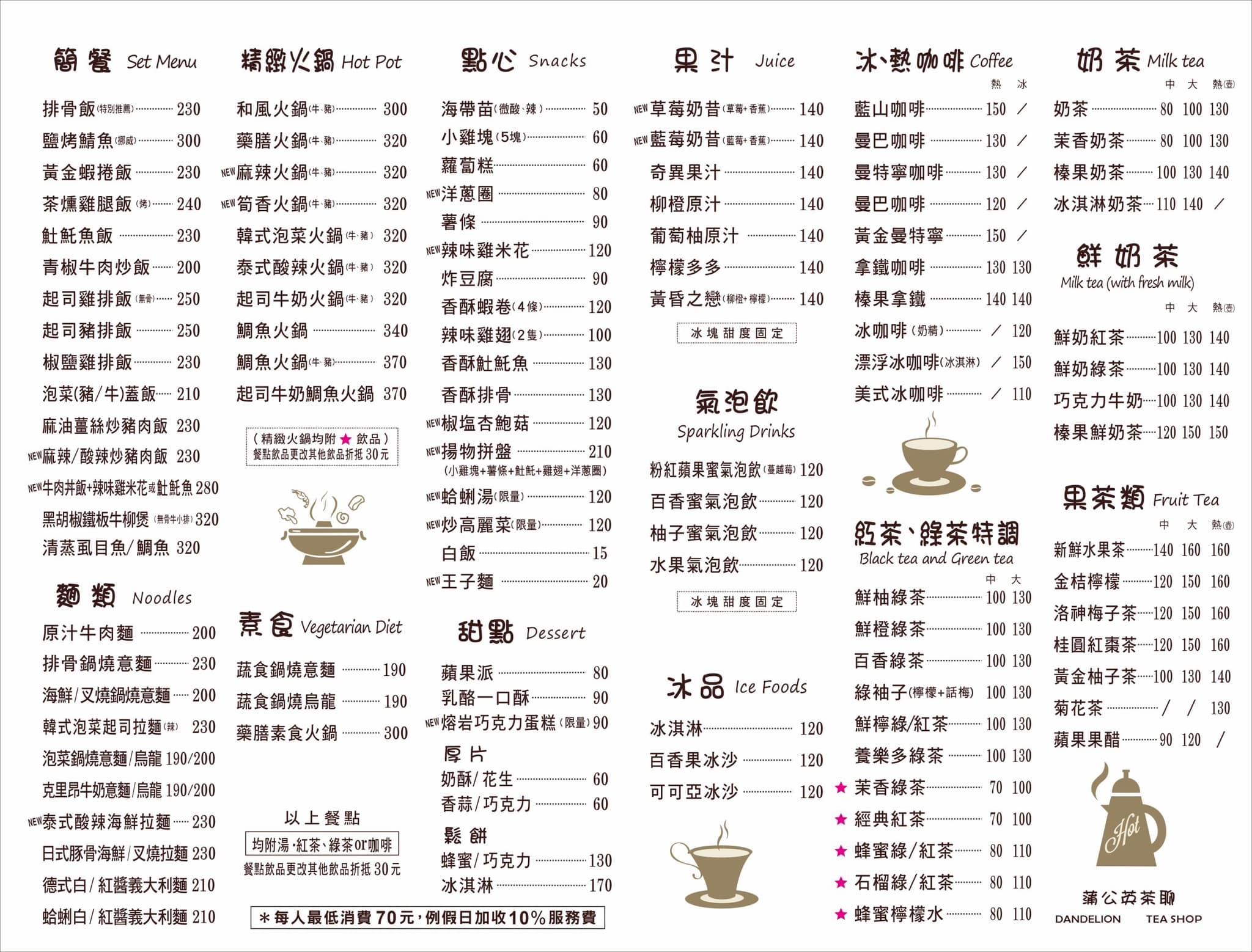 營業時間:AM11:00-PM10:00 附近有衡文宮收費停車場可以停車(計時收費) 中式套餐、火鍋、義大利麵、拉麵、咖啡、飲品、點心、甜點應有盡有