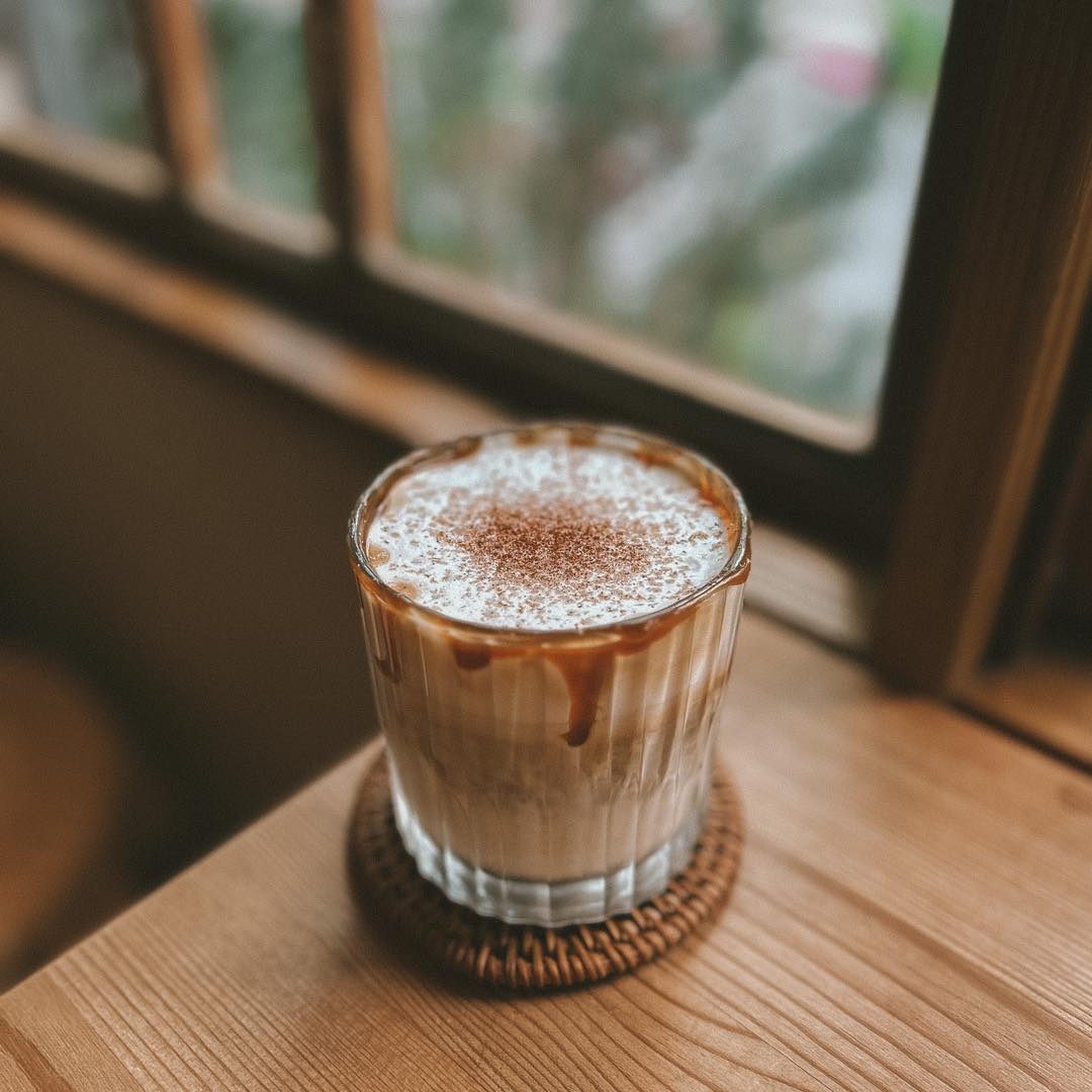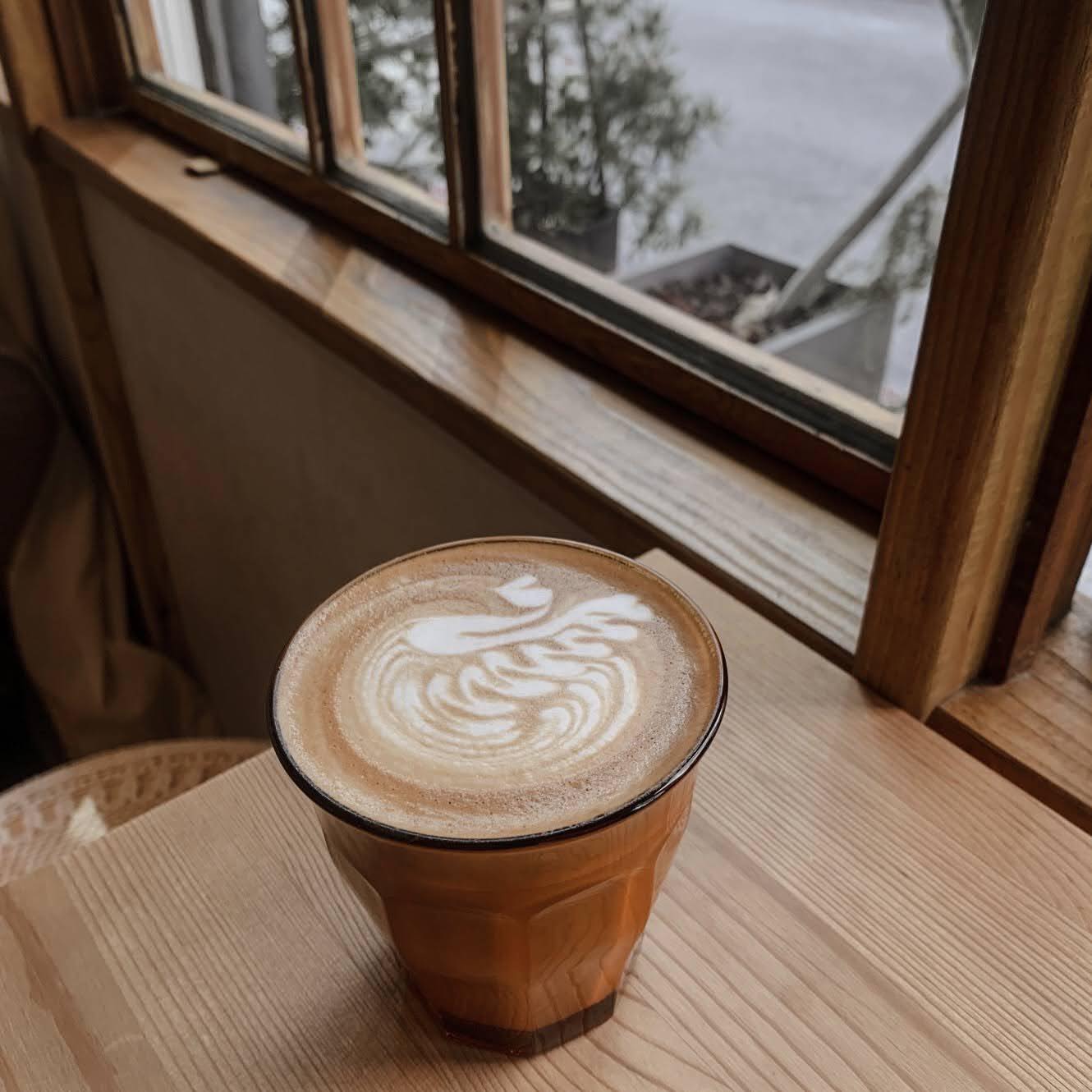 店面整體為質感玻璃窗搭配木質框窗的文青風格,搭配植栽點綴,