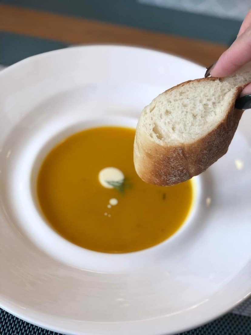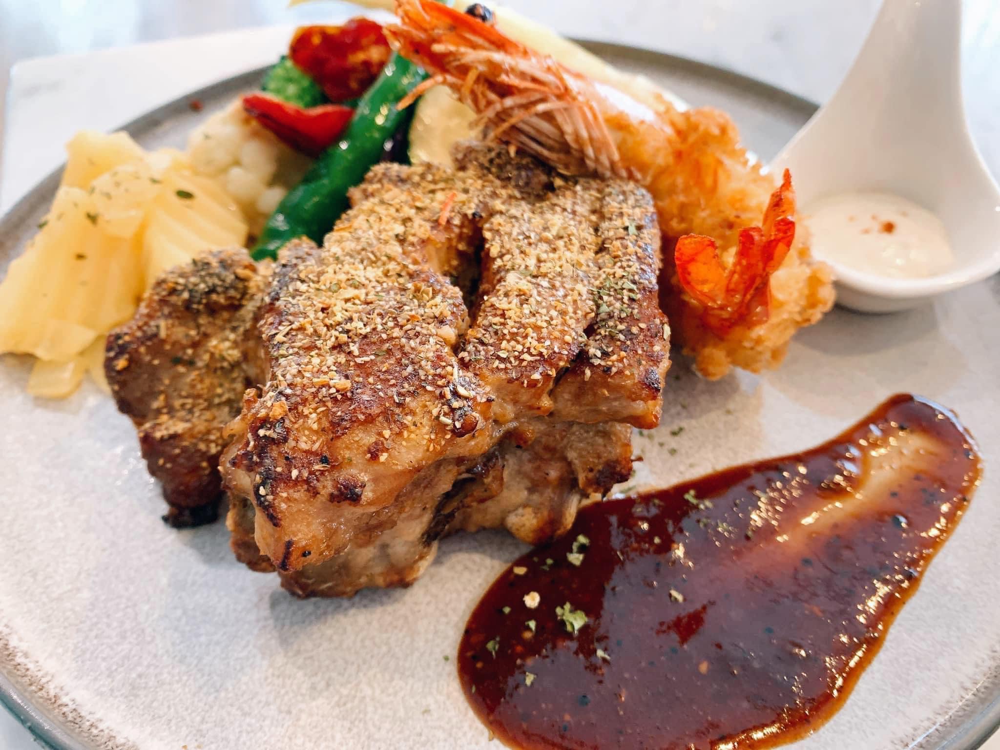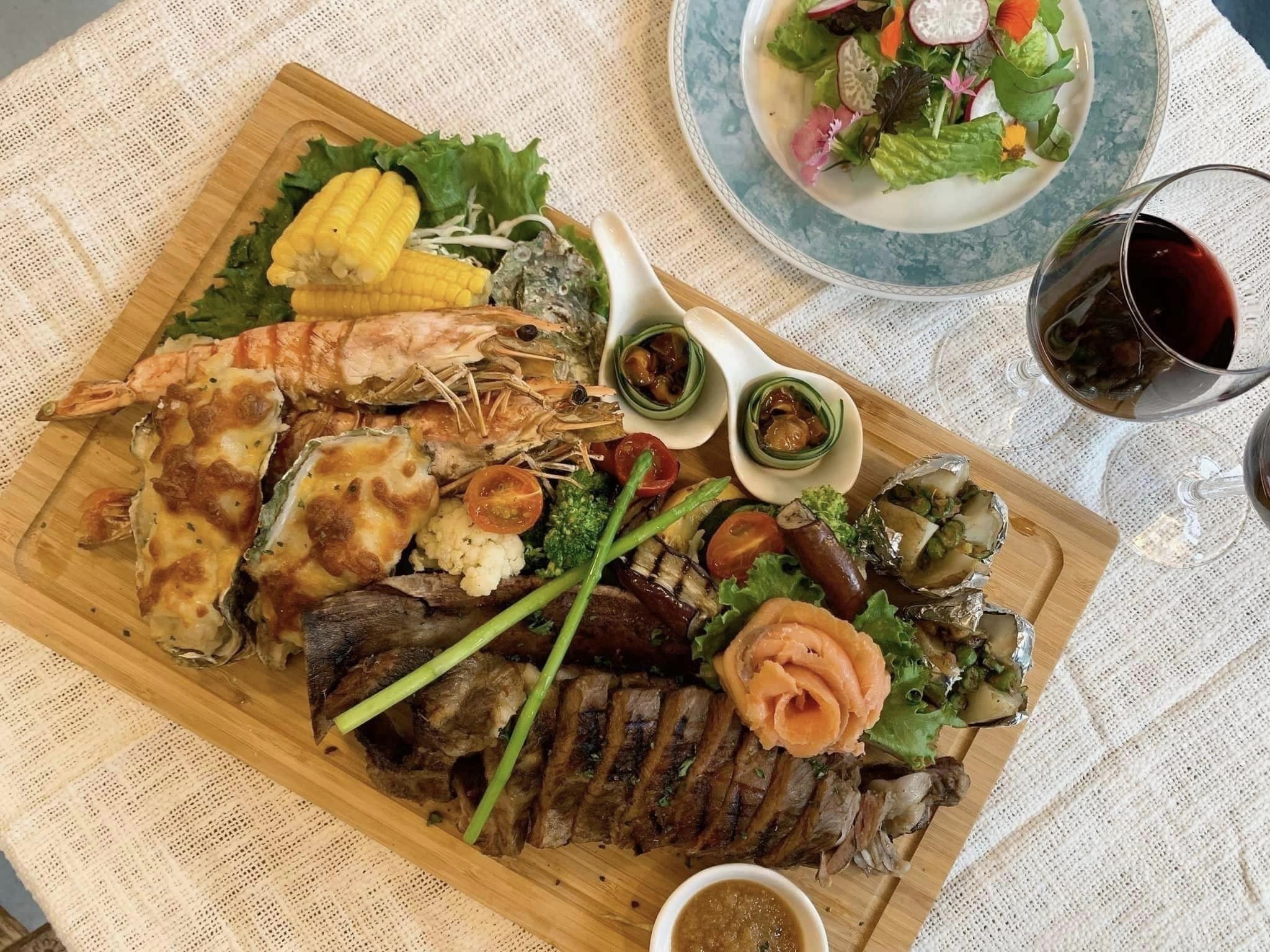 菜單提供套餐,皆附前菜與湯品,主食八選一、飲品三選一,更換飲品可折抵金額,