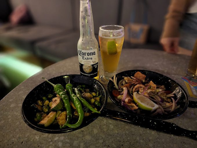 位在Hotel INDIGO 15樓的Pier no.1 也是結合上港都的在地特色,用貨櫃屋、電覽捲軸、木箱、小提燈打造出濃厚的工業風氣息、地上搭上草皮、搭配上些許的座位,又有著野餐風氛圍,呈現出獨特輕鬆慵懶的氛圍。
