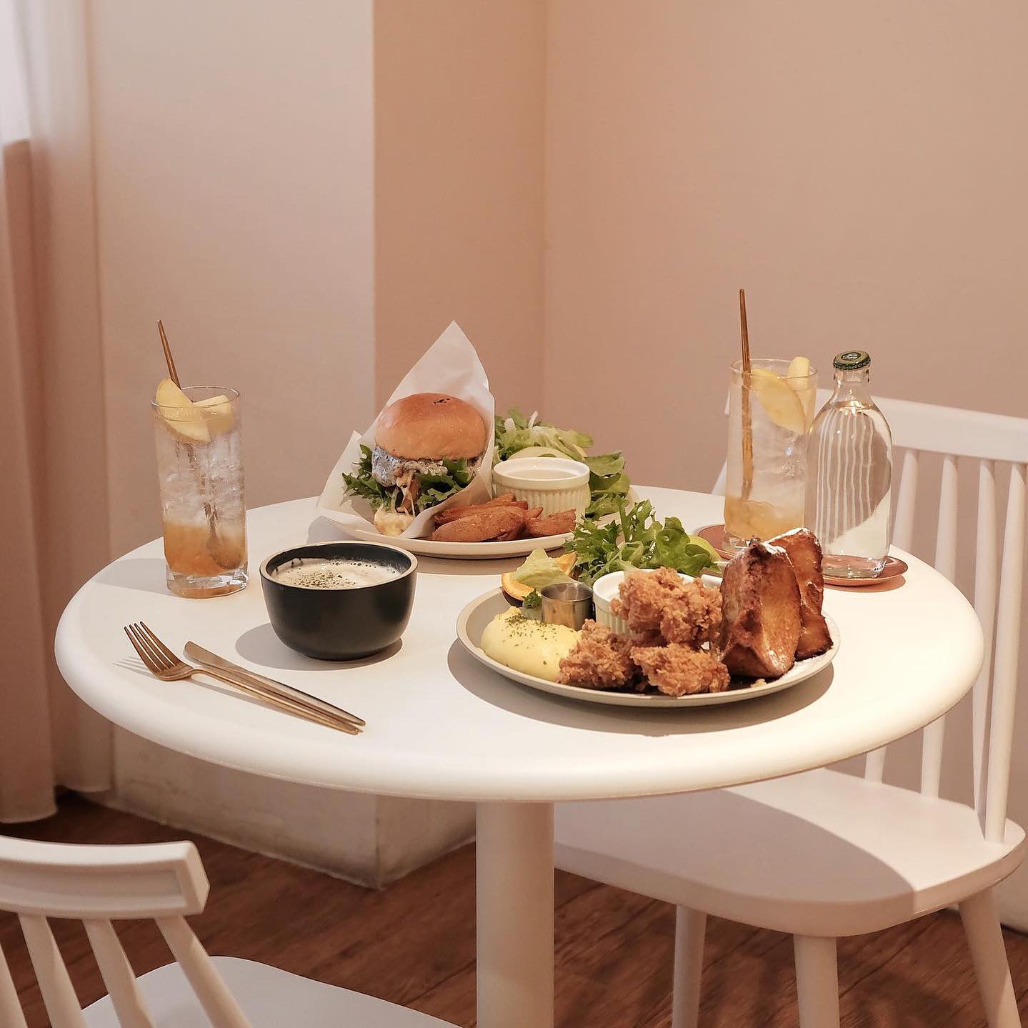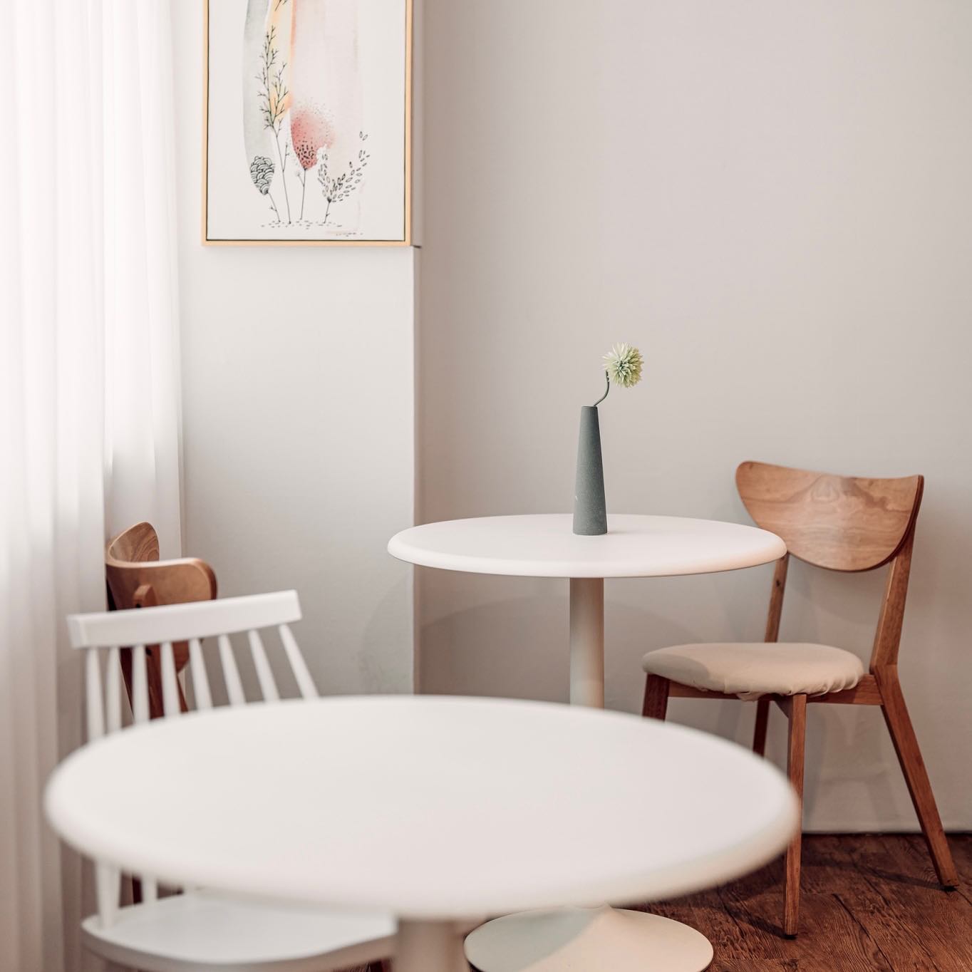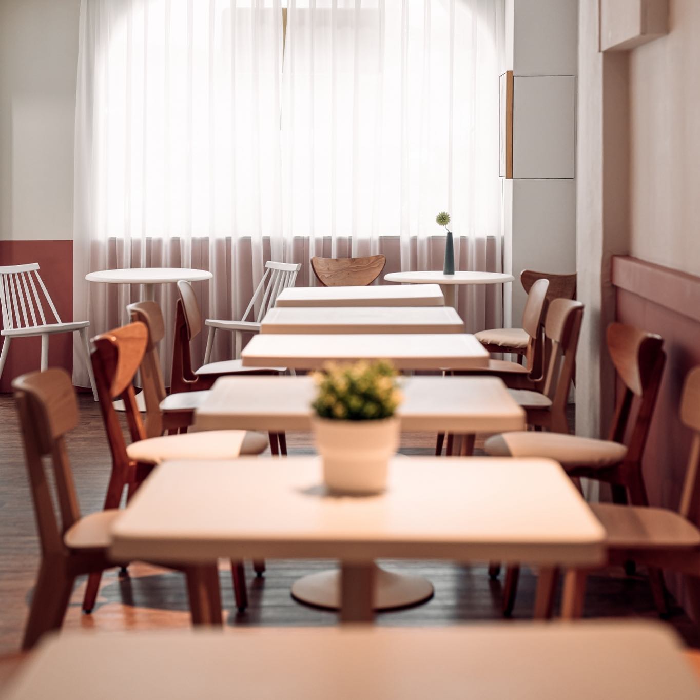 店面整體為白色搭配莫蘭迪橘紅色系的風格,充滿了溫馨又舒適的氣氛,